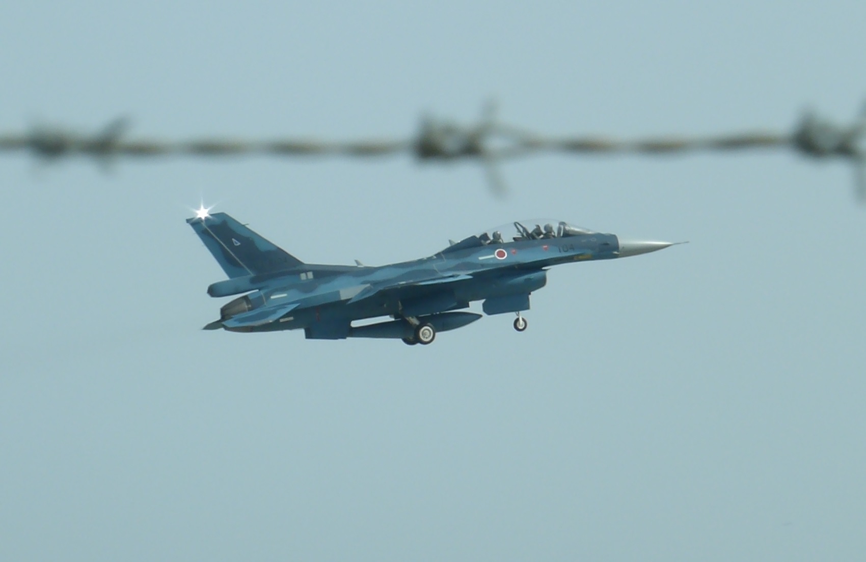 でも現地に着いたら偶然にも雨があがっている!!そしてちょうどF-2戦闘機が機動展示飛行やってた!!